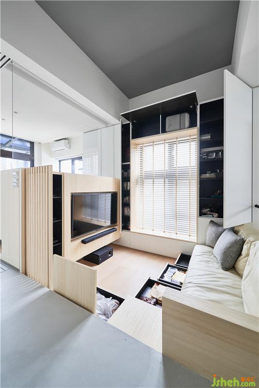 2.刻意保留原有下凹空間,利用高低差的臥榻變成客廳界面