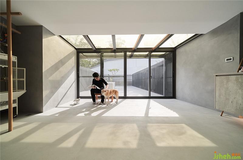 戶外區(qū)原來建商只是貼貼磁磚,我們就建議屋主可以整理一下,地板鋪個塑木地板,圍牆用隔柵修飾,并刻意在中間做了一個隆起的水泥塊體,可以種植栽,也可以變成中島的概念,這裡是狗狗的游戲天地臺灣裝修設計。