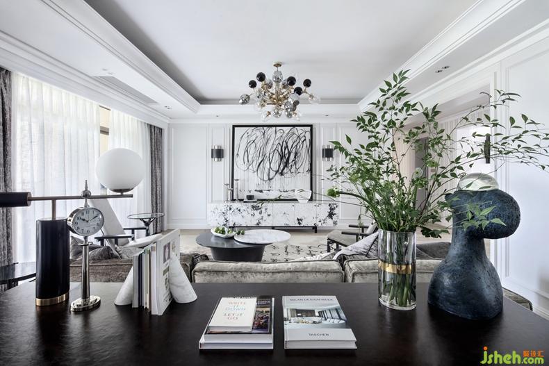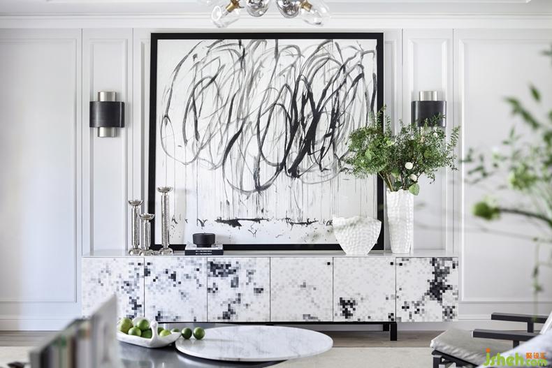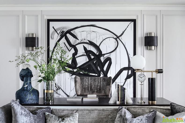以簡潔的白,及細膩的線條表達空間的張力。設(shè)計公司同時軟裝能兼具文化氛圍里交織傳統(tǒng)與時尚,讓空間在內(nèi)斂之下不失時代的氣息。步入玄關(guān),意境開始生長,如果能在傳統(tǒng)之下,將新意美學(xué)注入空間概念,無論是家俱,掛畫或是擺件,構(gòu)成幾何美學(xué)或許不太困難,如果將靜態(tài)之物以動態(tài)方式呈現(xiàn),才是能體現(xiàn)空間靈動的標(biāo)志。如果英文字母的地毯與硬裝歐式線條是西方的經(jīng)典,那么帶有中式太師椅與書桌背后的那面抽象水墨則是東方的代表,其能在空間中和諧相融,則是混搭風(fēng)格里東西方文化的高度統(tǒng)一,在雪白的空間里,自然光線所投射的暖,是這個家該有的寧靜和家的味道。
