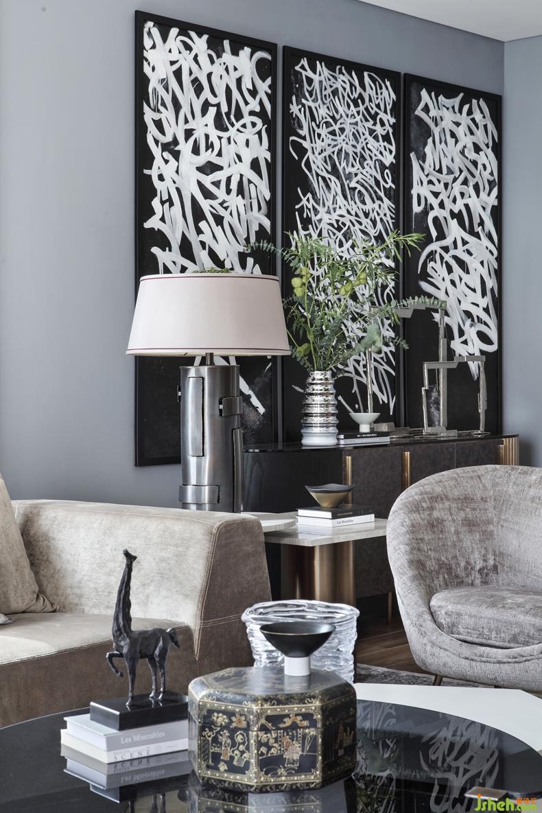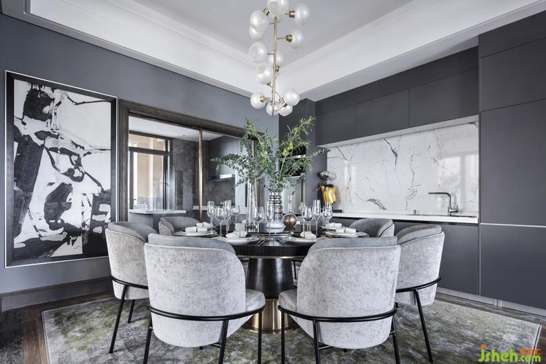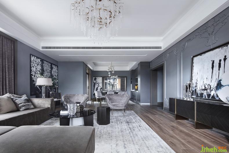 以酷炫的深灰色做為法式味道的時(shí)尚變革,或許是SCD玩味法式的另一種手法,將高貴的金與韻味深遠(yuǎn)的現(xiàn)代抽象的油畫混搭其中,讓其簡(jiǎn)潔的硬裝空間有了閃亮的吸睛之筆,自然、時(shí)尚和趣味仍是空間氣氛的重點(diǎn),希望將法式的經(jīng)典以現(xiàn)代酷酷的味道來(lái)呈現(xiàn)