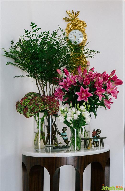 SCD崇尚家的安靜,卻不喜歡家的冰冷,這是所有住宅空間SCD注入的陳設理念。墻身的白和木地板的棕黃,讓空間溫暖明亮,沒有任何天花造型和裝飾材料堆砌的空間,極其安靜、素雅、內(nèi)斂,天花那盞上百年歷史的花燈,在極其簡潔的空間顯襯得更為有力和明艷,百年工藝的美和材質(zhì)的細節(jié)點綴是空間的支撐力量,是空間美感呈現(xiàn)的基礎,映襯邊幾那簇粉紅百合,摻差著綠色的香葉、白色的玫瑰,青紅的繡球,混合著雕塑的童趣感,那似乎拿著粘桿捕蟬、和在木凳邊逗貓戲狗的孩童,充滿記憶深處的情感和共鳴,這是最好的軟裝手法,也是最具溫度的和生活情趣的場景畫面,SCD作品總是充斥著這樣美好的情愫......