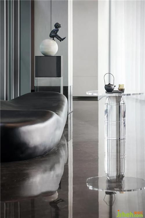 The benches in the reception desk at the entrance look like jagged rocks, and the tea table, which is as clear as water, looks like a natural picture, refreshing. Art is sometimes an abstract spiritual gesture, a subjective feeling.