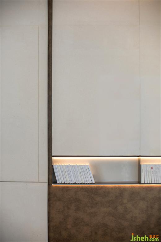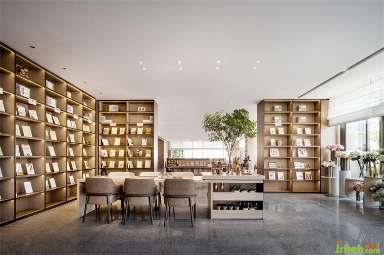 設(shè)計(jì)師保持空間敘事的邏輯,深圳售樓處設(shè)計(jì)以相同色調(diào)維持空間的同一性。遞進(jìn)的層次關(guān)系,純粹的色彩加重空間進(jìn)深感,讓自由開放的洽談空間,以更加穩(wěn)定、安逸的環(huán)境情緒傳遞給來訪者。