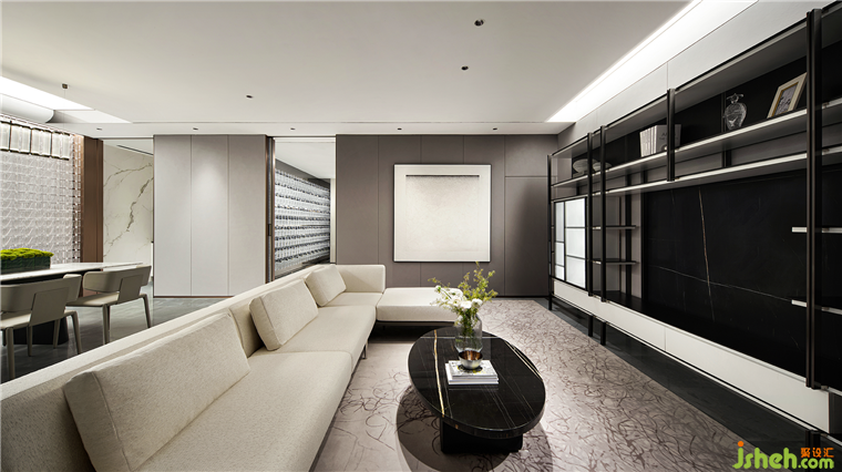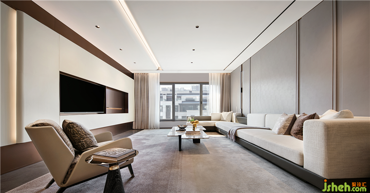 人的居家活動(dòng)是復(fù)合且多重的,所以在設(shè)計(jì)中需要?jiǎng)?chuàng)造更多“聚焦點(diǎn)”,讓人們?cè)谌粘V胁煌5那袚Q場(chǎng)景。因此,在滿足社交空間之外,心靈庇護(hù)的精神場(chǎng)域成為都市人的生活必備,一張舒適的沙發(fā)、親膚的搭毯,將空間統(tǒng)一為包容性的舒適棲居場(chǎng)所,在柔和基調(diào)的包裹中,融入家具形體,設(shè)計(jì)讓人迅速卸下心防、治愈力拉滿,豪宅設(shè)計(jì)將雅奢主張對(duì)材質(zhì)的極致運(yùn)用,讓空間柔和而隱奢的氣質(zhì),成為年輕雅豪客群鐘意的風(fēng)潮。