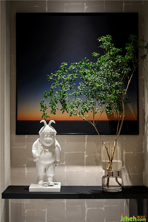 家的設(shè)計(jì)迷人之處,是因?yàn)樗鼑L試著在共同生活的空間中,盡量還原每一個(gè)家庭成員喜歡的樣子,在共性中保留個(gè)性。SCD創(chuàng)意總監(jiān)杜恒從藝術(shù)美學(xué)出發(fā),以雅奢主張?zhí)赜械乃囆g(shù)和文化運(yùn)用,滿足主人內(nèi)心對(duì)追求自由的表達(dá),并彰顯其個(gè)性獨(dú)特的審美和家的氣質(zhì)。
