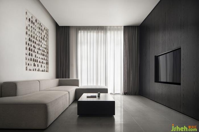 黑色橡木板墻體,解決了電視與收納的雙重功能。廣州別墅裝飾富有詩意和哲理的“裝置畫”成為沙發(fā)背景,白居易的古詩“玩山水”讓心變得更加灑脫坦蕩。