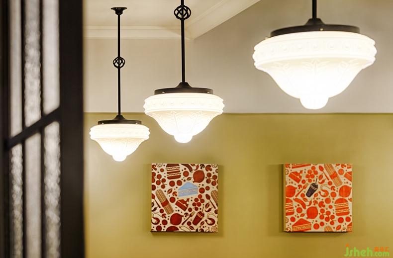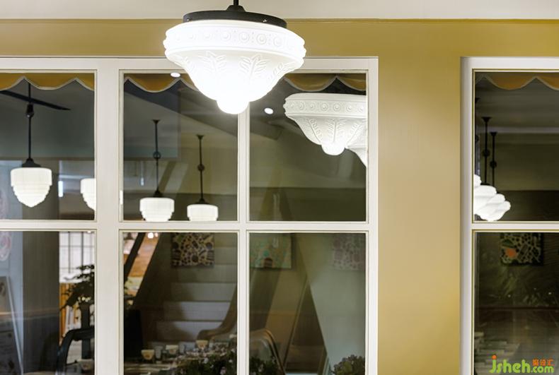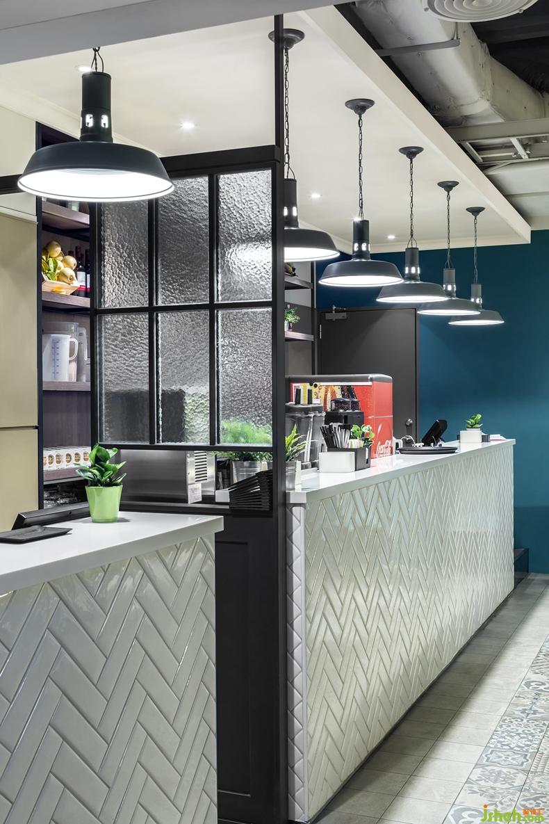 餐廳墻面以各種大地色彩為主要色彩基調(diào),營造出溫暖自在的氛圍。以銀霞與冰柱玻璃作復(fù)古式窗戶,并作為迎賓區(qū)和用餐區(qū)隔屏。用餐區(qū)的家具以木頭質(zhì)感的用餐桌和水綠色座椅,加上復(fù)古造型燈具,以呼應(yīng)設(shè)計主軸。