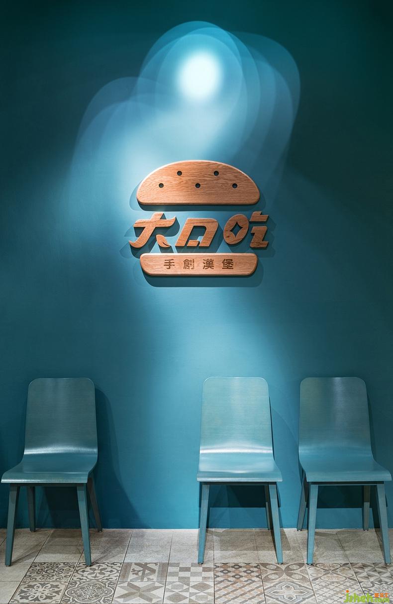 DACOZ 大口吃手創(chuàng)漢堡,是一間以新式創(chuàng)作型漢堡為主要餐點的餐廳。設(shè)計師以「新復(fù)古風格」為主要設(shè)計手法。入口意象為復(fù)古小木屋造型,循著復(fù)古花紋圖騰地磚拼貼踏入店內(nèi),迎賓區(qū)是一個白色長形的服務(wù)臺面和幾盞利落的金屬造型燈具的吧臺將消費者的目光指引進來,端景為木作漢堡造型的大logo 加上大自然的水綠色墻面,營造出歡愉舒適的用餐氣氛。