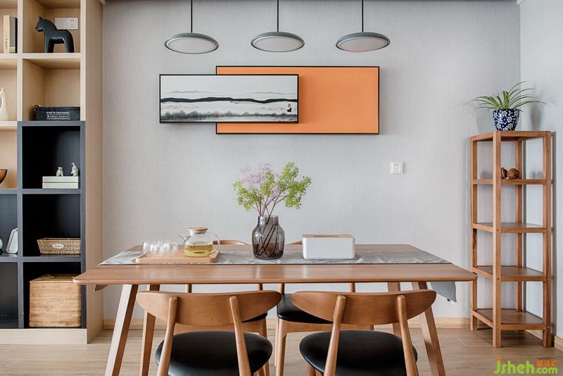 餐廳的軟裝,簡(jiǎn)潔大氣具有設(shè)計(jì)感的同時(shí)也保證其實(shí)用性。黑白簡(jiǎn)約氣息的山水風(fēng)景掛畫(huà),搭配愛(ài)馬仕橙的色彩,現(xiàn)場(chǎng)定制的書(shū)柜分了顏色,整體更為融合統(tǒng)一。