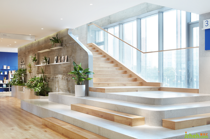 與此同時(shí),室內(nèi)設(shè)計(jì)師選用木地板、淺灰色水泥磚及水磨石等自然材質(zhì)作為主材,進(jìn)一步營(yíng)造輕松、親民的閱讀氛圍。