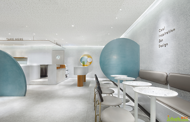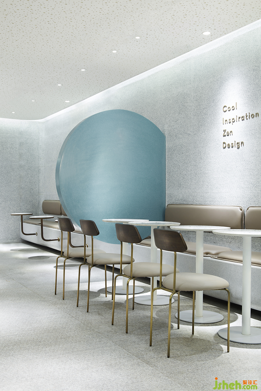 漂浮的圓片將排隊點單的動態(tài)區(qū)域單獨劃出,讓舒適入座和長時間停留成為可能。