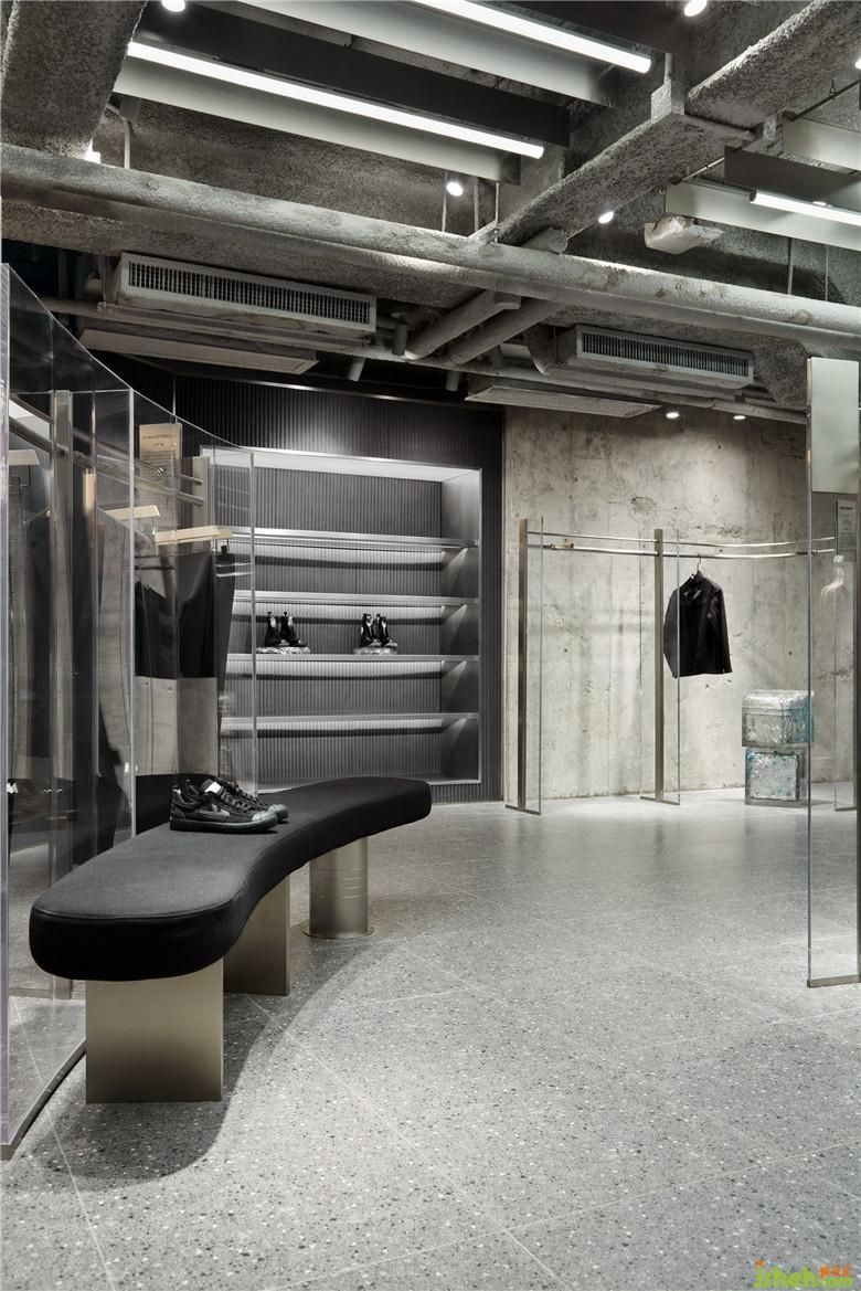 項(xiàng)目選址與回收廠的走訪經(jīng)歷就像兩條分別出發(fā)的軌跡,因奇妙的際遇殊途同歸。在追尋未來生存空間與環(huán)境可持續(xù)的普適價(jià)值中,設(shè)計(jì)從對(duì)海洋與文明的思考到實(shí)驗(yàn)性材料測(cè)試的實(shí)踐,并最終構(gòu)建了傳達(dá)品牌內(nèi)核的商業(yè)空間。