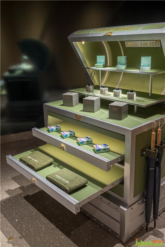 入口的接待區(qū)中設(shè)置品牌周邊產(chǎn)品的售賣展柜,如同沙漠綠洲中給旅行者帶來驚喜的藏寶箱。