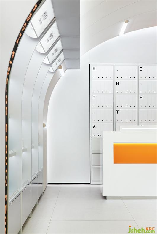店面門頭處利用鏡面不銹鋼,本身便足夠吸睛的品牌色橙色在鏡面的作用下,更加放大了自身的優(yōu)勢。