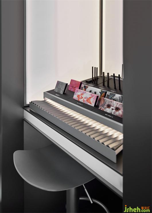 ▲設(shè)計團(tuán)隊結(jié)合埃舍爾設(shè)計美學(xué)重新打造妝容定制區(qū),讓消費者在主題區(qū)可從不同的角度和燈光模式探索多種美妝體驗。