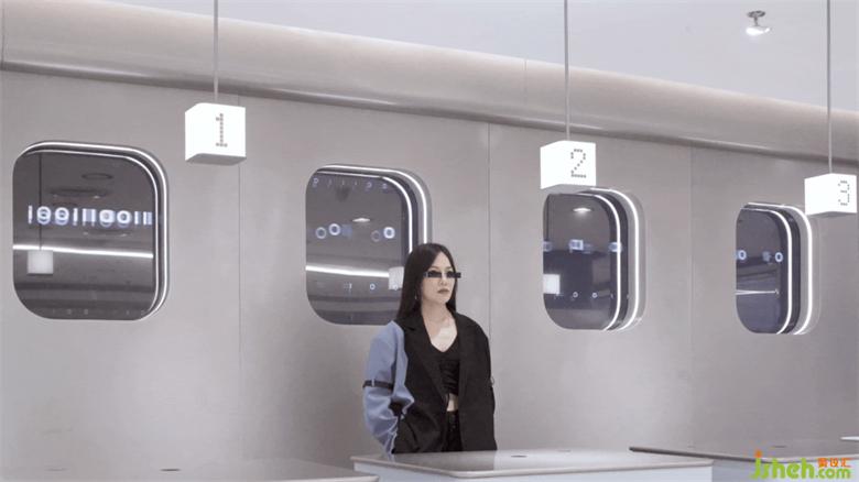 二層收銀臺(tái)背景墻將舷窗造型和數(shù)字屏幕結(jié)合,模擬飛船啟動(dòng)時(shí)記錄下的宇宙圖景,用最直觀的方式講述故事,在消費(fèi)體驗(yàn)流程的末端為顧客增加驚喜。