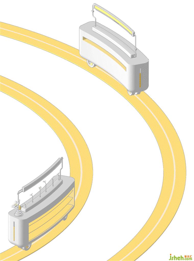 基于空間布局,設計師以弧形導軌進行導臺的布局,裝修設計未來農場里的運輸車化身為飽含科技感的主題島臺,加入植物灌溉系統(tǒng)設計元素,強化場景的現(xiàn)場感。