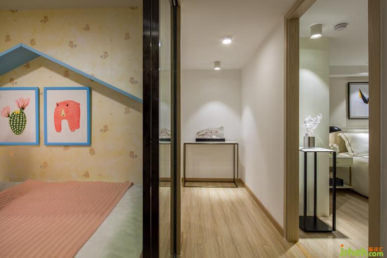 一層是客餐廳、書房,設(shè)計采用開放與半開放格局,區(qū)域之間用半透明磨砂玻璃弱化邊界關(guān)系,滿足功能的同時釋放更多的心理空間。配飾上以白色陶罐、自然綠植和現(xiàn)代幾何抽象畫,營造日常生活化的空間氛圍。而二層則一切從簡,以自然質(zhì)樸的北歐風營造了靜謐安靜的睡眠氛圍。在這里,精簡的格調(diào),從容的寫意,足以讓人消除一天的煩憂。