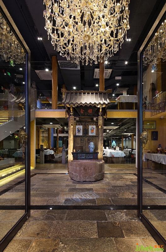 設(shè)計上運(yùn)用門鐺、圖騰、門神、戲臺、陳舊雕花屏風(fēng)、民國描金的服務(wù)臺、清末京劇武生大靠(戲服)、掛畫等老北京傳統(tǒng)元素,融入西式油畫、家私、水晶吊燈等勾勒出“古老而時尚,傳統(tǒng)又現(xiàn)代” 的東情西韻之就餐環(huán)境。室內(nèi)設(shè)計師