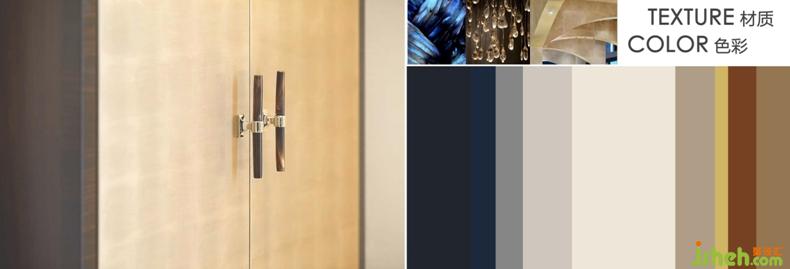 設(shè)計(jì)用材:茶鏡、磨砂玻璃、淺咖網(wǎng)石材、爵士白、黃鈦拉絲不銹鋼、皮革等