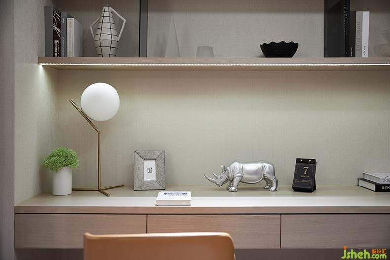 設(shè)計方案上,設(shè)計師以過道為分隔線將空間呈左右兩邊分布;多功能房作為過渡區(qū)域,演繹整體戶型空間的書房角色,引入自然光線,既保證使用過程中的視線明朗,也提供了個人休憩的放空區(qū)域。