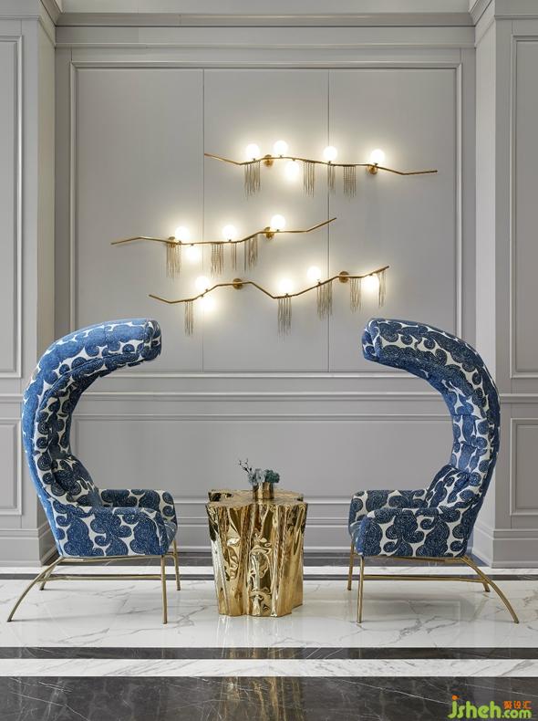 電梯延廊高垂“貝殼”掛飾,增加走廊的視覺延長性,拉伸空間氛圍,使人身臨其境而覺空間通暢,舒心愉快。設(shè)計(jì)公司