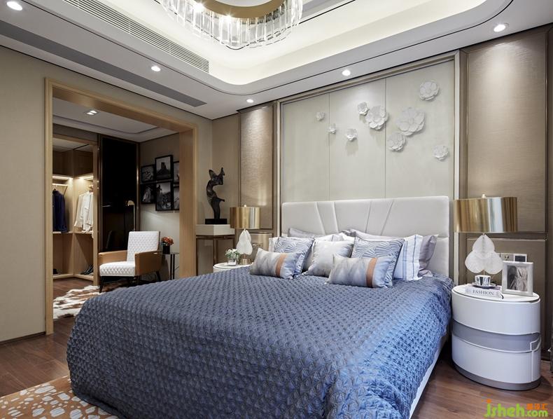 次臥以“星點(diǎn)梅花”為景,使居室呈現(xiàn)出詩人鄭板橋所述“室雅何須大,花香不在多”的意境。深具質(zhì)感的墨蘭色與清雅色系的床品互映搭配,現(xiàn)代設(shè)計(jì)與東方文化交織相融,品質(zhì)承襲,色澤典雅,在簡(jiǎn)約的空間中顯得落落大方,半透明的紗簾設(shè)計(jì),更營(yíng)造出怡情養(yǎng)心的居室環(huán)境。Second lie with "star point plum blossom" for the scene, so that the bedroom presents the poet zheng banqiao described "room yaohe big, flower is not in many" artistic conception.The bed that deep provides simple sense blue color and elegant color to fasten each other reflect collocation, contemporary design and Oriental culture interweave photograph is united in harmony, character inherits, colour and lustre is elegant, appear in contracted space natural and graceful. In addition, advocate second lie all sets translucent gauze shade, build the bedroom environment that gives happy sentiment raises a heart.