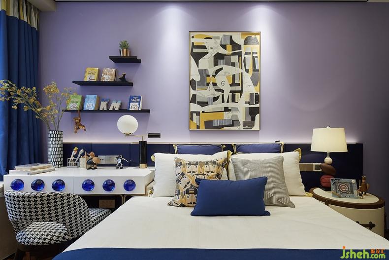 兒童房色彩鮮艷跳躍,不同飽和度的紫色、藍(lán)色交相點(diǎn)綴,凸顯出空間小主人自由活潑的性格心智。Children room colour is bright-coloured jump, the purple of different saturation, blue ornament, highlight gives dimensional small host free and lively disposition mental.