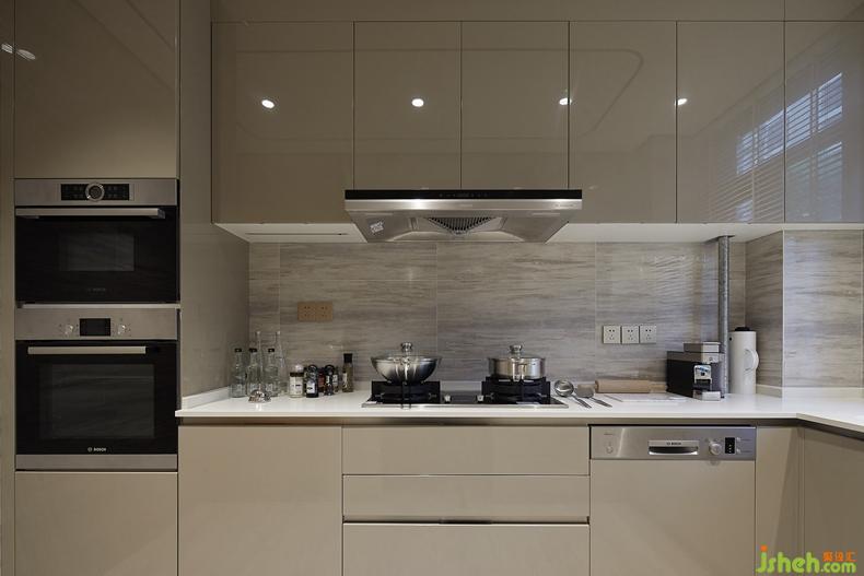 廚房承載著傳承人間煙火氣的使命,嵌入式設(shè)計(jì)達(dá)到規(guī)整空間的效果,整齊劃一的用具陳列,使居室主人在使用過程中對(duì)整個(gè)空間運(yùn)籌帷幄,收放自如。