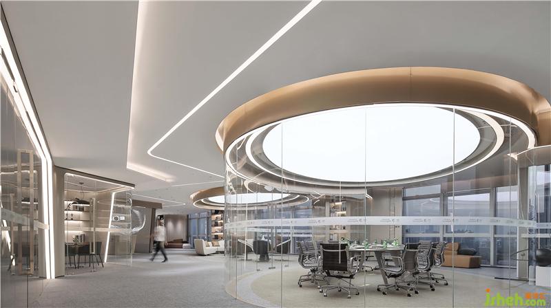 曲線與幾何在空間共存,線條的形式感使辦公室充滿現(xiàn)代化與品質(zhì)感,在視覺與使用上滿足辦公人群的情感訴求,構(gòu)建人的第一感性認(rèn)知。辦公室設(shè)計