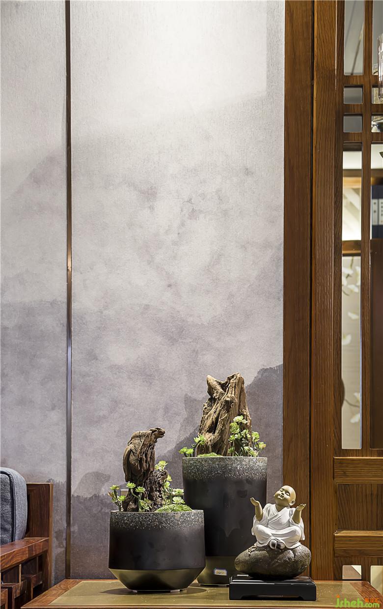 東方文化中,山水是人格修養(yǎng)或寓心明道的象征,室內(nèi)設(shè)計(jì)師在客廳背景處運(yùn)用山水元素將這種文人情性融入設(shè)計(jì),雄渾邈遠(yuǎn)的空間精巧詩意的細(xì)節(jié),兩美并峙,各領(lǐng)千秋,一川山水,滿室風(fēng)雅。走進(jìn)客廳,就能感受到主人對于生活的品質(zhì)追求。電視背景墻設(shè)置了儲物裝飾柜,滿足日常的收納需求,同時用絹絲刺繡鑲嵌,凸顯客廳的精致大氣。