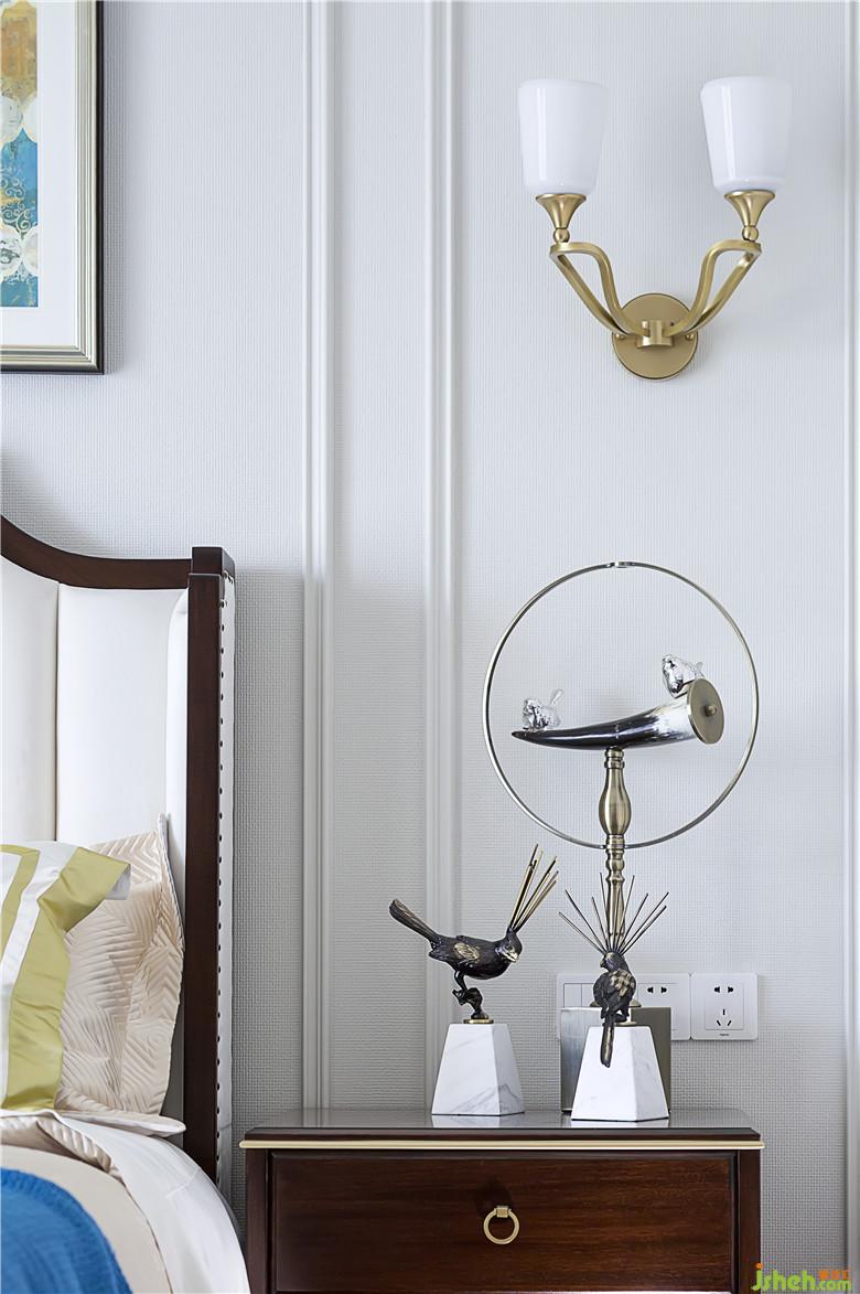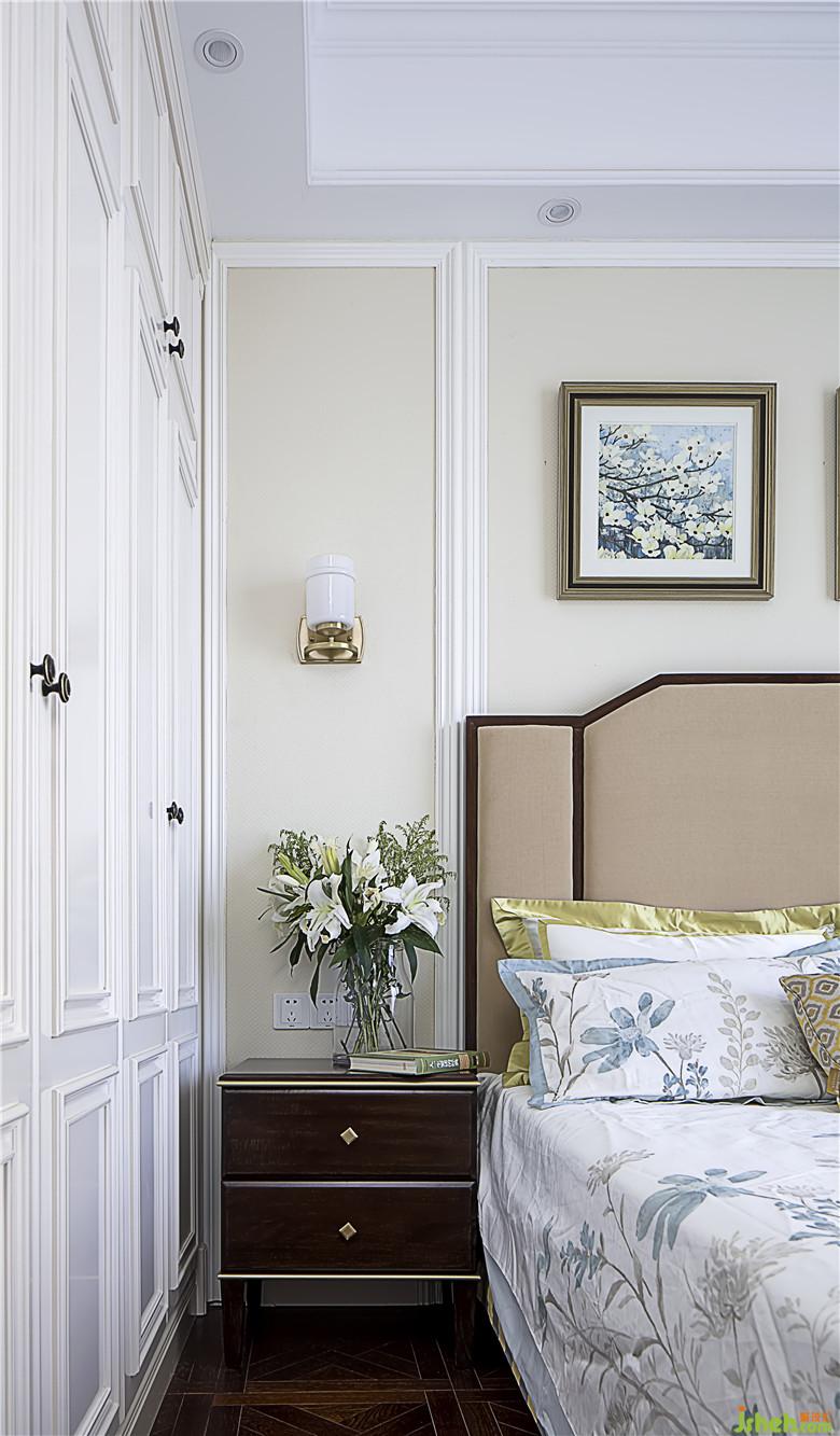 臥室:主臥室的床品以及飾品室內(nèi)設(shè)計(jì)師選擇走的則是相對(duì)清新精致的路線(xiàn),床品沒(méi)有花哨的修飾,清淡近人的顏色只為自然舒適,讓人悅目即可。只是局部色彩的運(yùn)用呼應(yīng)了客廳家具的顏色搭配,而避免了設(shè)計(jì)元素的脫節(jié)。