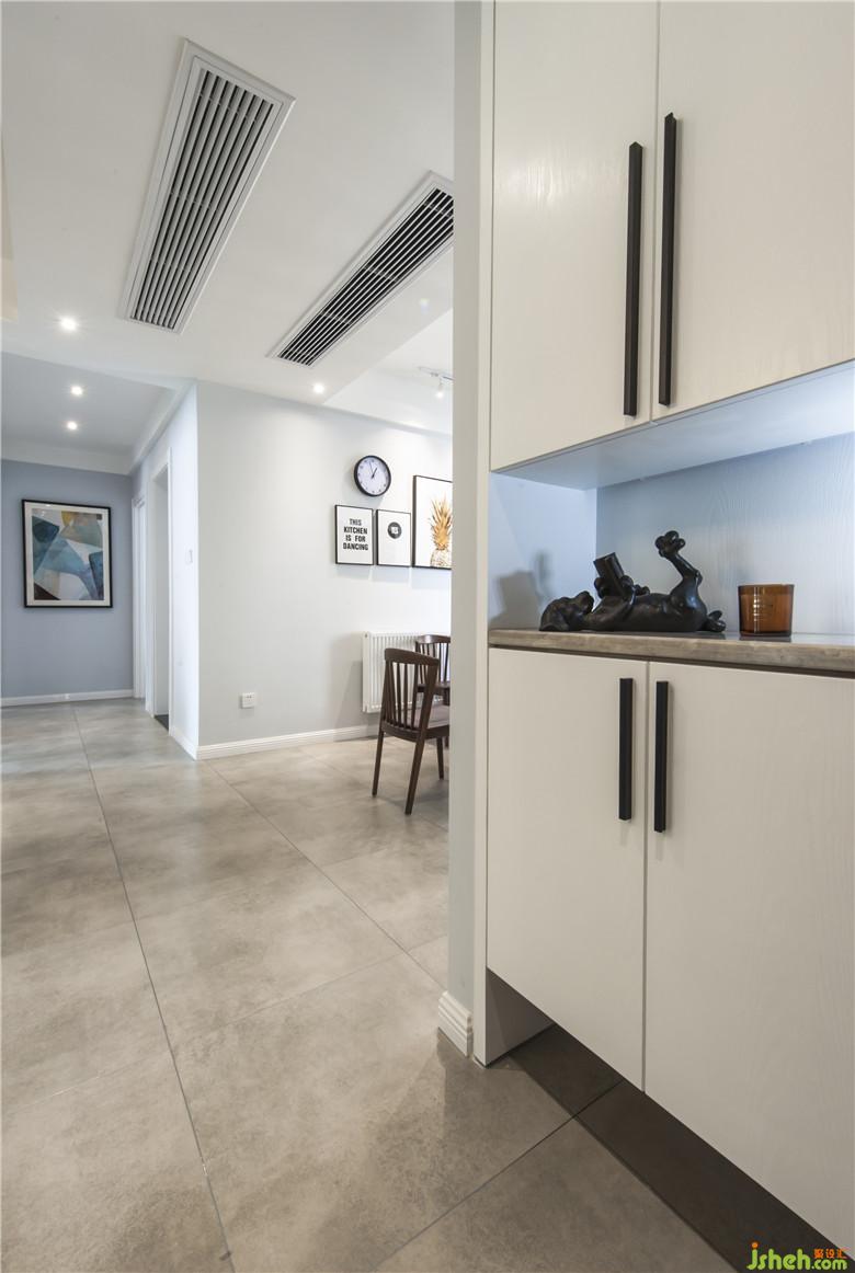 結(jié)構(gòu)簡(jiǎn)單明了,鞋柜設(shè)計(jì)方便實(shí)用,水泥色的地面古樸自然。