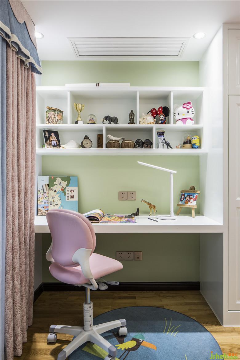 兒童房以清新的粉綠色與粉紅色的搭配來凸顯空間氛圍甜美與可愛,隨處可見的動(dòng)物元素和氣球、城堡,為孩子構(gòu)建了一個(gè)童真童趣的空間。
