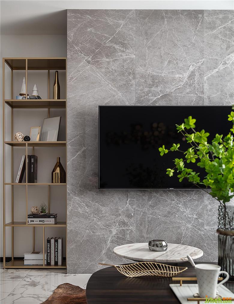 客廳墻面,刷漆壁布的運用,在被賦予了富有肌理的觸感的同時,還回避了后期墻面炸裂的尷尬。非常耐用且易于打理。電視區(qū)域,石材和壁布的搭配。室內(nèi)設計師讓墻面顯得干凈利落且層次有序。