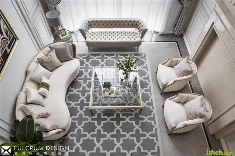 5米多層高的挑高客廳,大面積落地窗引入雙倍自然光,整個空間更顯開闊疏朗。中性的沙色系墻面與地面低調(diào)內(nèi)斂的灰色系的搭配相得益彰,散發(fā)著一種靜謐的味道;隨著線條的鑲嵌,中性色調(diào)的色彩深淺疊加,加深空間層次和細節(jié),精致的家具點綴其中,一針一線,一珠一紋,無不透露著精致;仿佛芭蕾,輕輕一點,卻見功力!