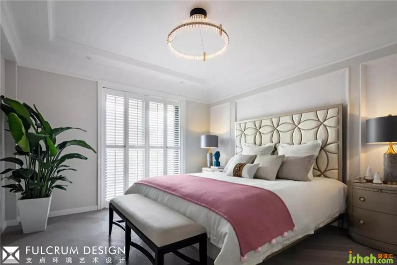 粉色系的床毯提亮環(huán)境,帶著些許浪漫,為臥室蒙上一層獨(dú)特的甜蜜感覺,一下將整個空間激活了!再加上獨(dú)特的淡金色的床頭柜和灰色大理石臺燈帶來了華麗的如同緞面的質(zhì)感加持,優(yōu)雅與寧靜、甜美與浪漫在這個臥室空間中并存,這一切都是最好的安排。