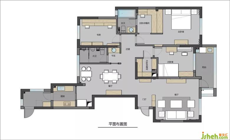 主臥室的柔和簡潔,兒童房那帶有一絲英倫風(fēng)的華貴,跟充滿理性的書房交織在一起。讓私人空間顯得豐富多彩但又不散亂,主次有序。