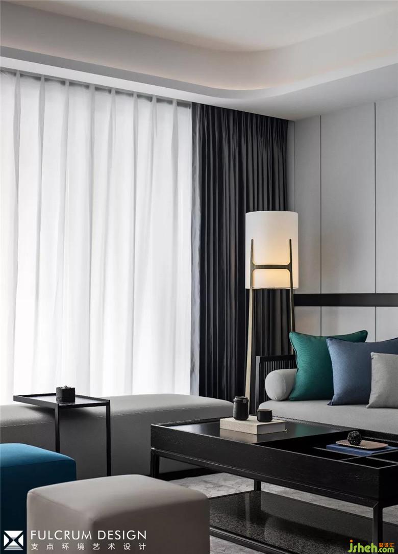 不像普通的客廳那樣簡(jiǎn)單的明亮,本案是利用大面積黑色將空間分域。