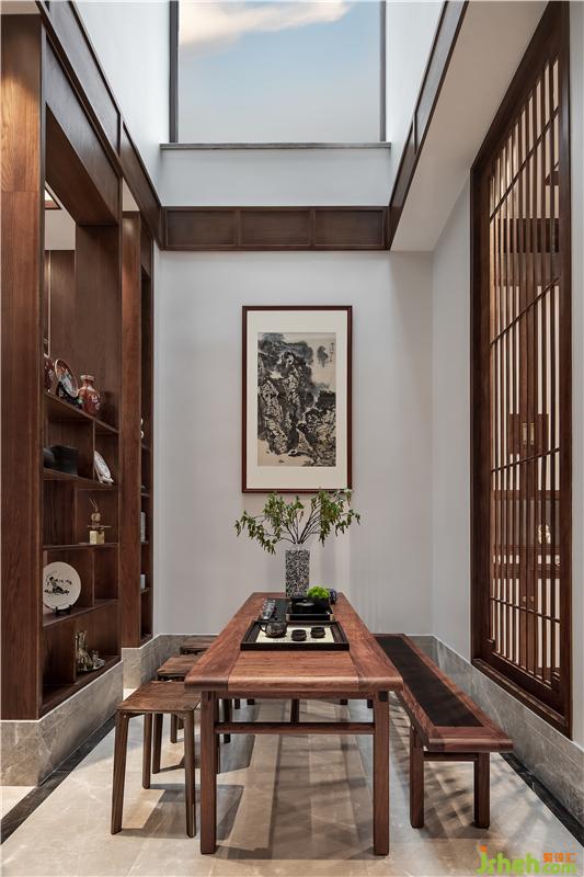 少了熱鬧色彩的歡騰,中式意境是波瀾不驚,一幅閑云野鶴的悠遠之意,低調(diào)謙和的姿態(tài)與樸實寧靜的意境。