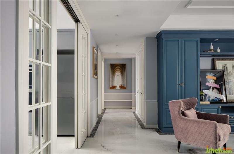 本案原本是一套布局規(guī)劃分明,結(jié)構(gòu)大致合理的經(jīng)典戶型。就如同男主人的職業(yè)一樣,在某事業(yè)單位從事科技領(lǐng)導(dǎo)工作多年,走的就是穩(wěn)重、嚴(yán)謹(jǐn)?shù)穆?。而男女主人都算性格開(kāi)朗,提的要求也不多,就是希望家里用藍(lán)色調(diào),但能夠有趣一些,畢竟平時(shí)都是嚴(yán)肅的工作,而自己年齡屬于中年入門(mén),還沒(méi)到消沉古板的時(shí)候呢,希望在家里就該有些隨意的個(gè)性——“生活,活成了黑白色并不好!”。但藍(lán)色也屬于內(nèi)斂色,如何能有趣一點(diǎn)呢?