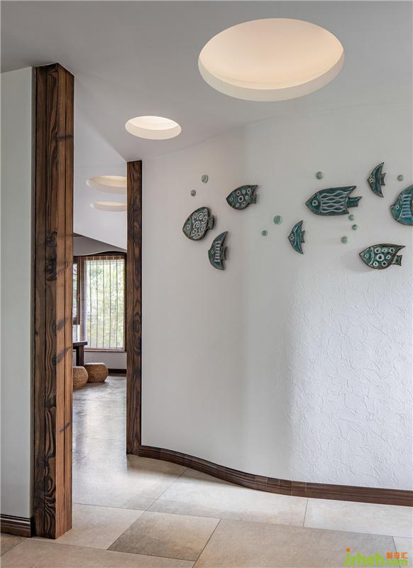 墻上有魚,頂上有荷,屋外有塘。