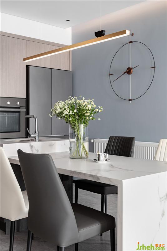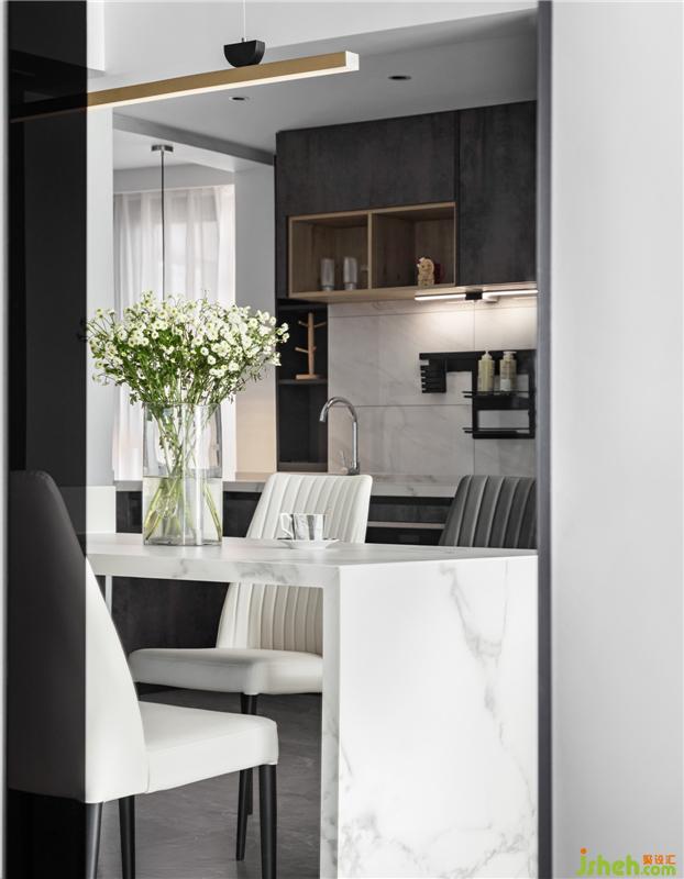 讓廚房、餐廳、客廳完美的融入到了一起。