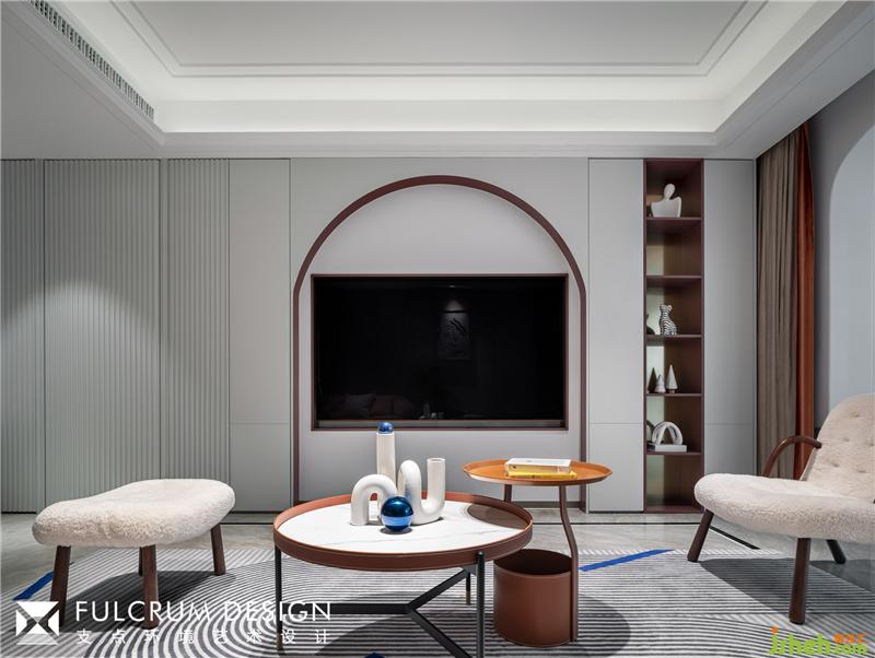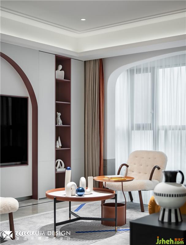 向左轉(zhuǎn),取結(jié)構(gòu)之美,弧形門洞層層遞進,把人的視線引入客廳。