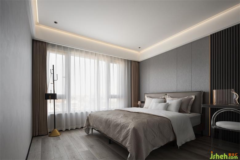 無需冗繁贅飾,純凈的灰色調(diào)中參入溫暖燈光,這個(gè)臥室就足以靜謐、溫暖。