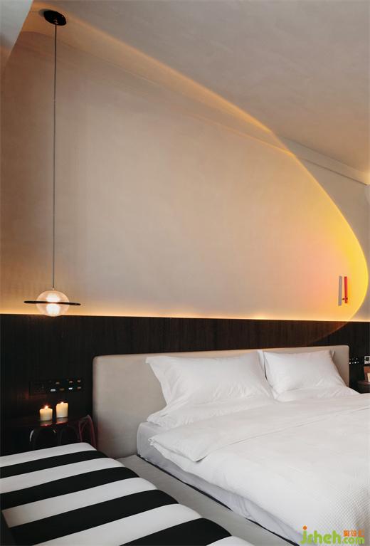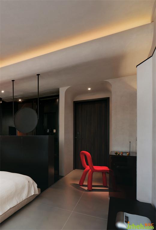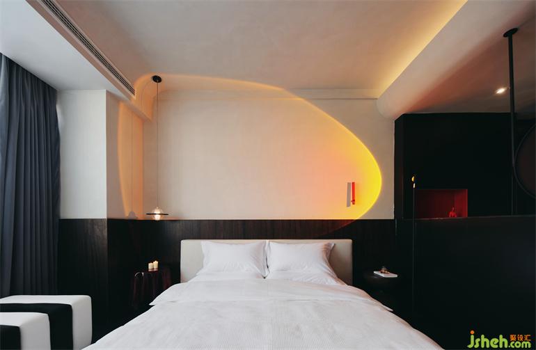 日落的鐘聲已然響起,昏黃的光線悄然充盈在屋子里的細處角落,深色的石材在默默告知黑夜即將到來,酒店設計折疊的墻體暗喻遠處起伏的潮汐,空間里素雅無尚的器物變得愈加溫潤,漂浮著的潺潺水聲營造出脫離于現(xiàn)實、照入夢想的情景。