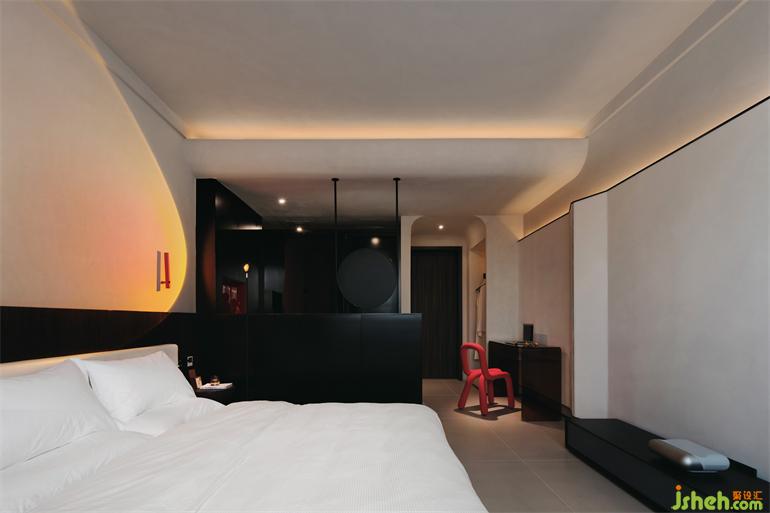 柔和的燈光暈染整個空間,穿插的界面模糊時空秩序,有張有弛的節(jié)奏,鍛造情調淑儀、質感愜意的場景氛圍。酒店設計墻面藝術家的畫作展現(xiàn)出世界的另一種模樣,使得訪客抽離平庸的日常,獲得心靈愉悅并持續(xù)蔓延。