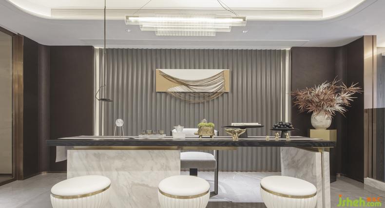 泉州別墅設(shè)計(jì)在負(fù)一層夾層這里加設(shè)一方品茗室,置上一張古樸而優(yōu)雅的茶桌,焚香品茗,是極好的放松以及修身養(yǎng)心的場(chǎng)所。平時(shí)也可以把地下室作為接待客人、朋友的會(huì)客室,把一樓客廳的空間留給家人,彼此之間都有各自的休閑空間,別墅裝飾互不干擾。