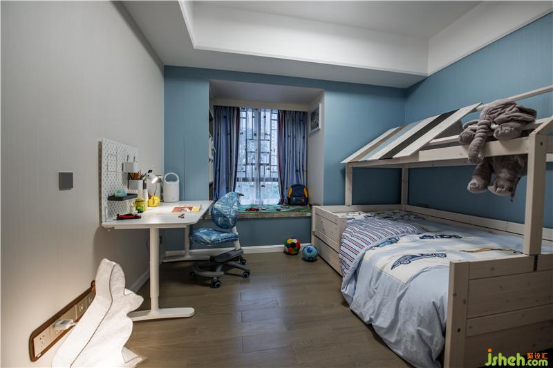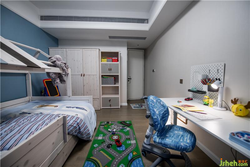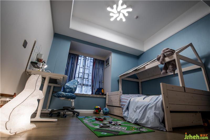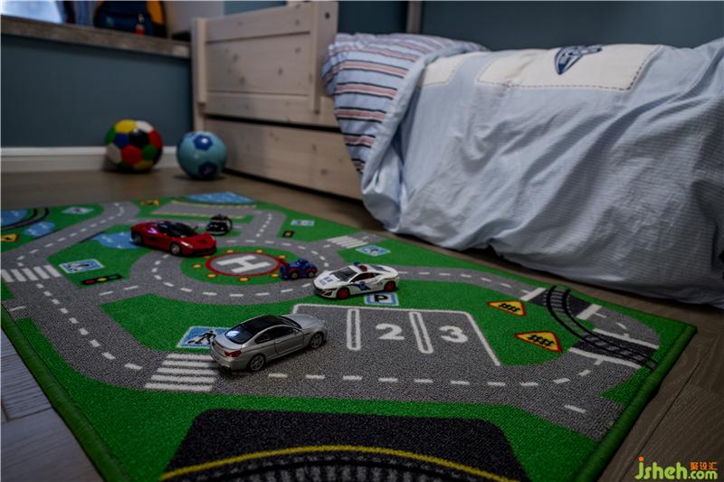 男孩子的房間用床品、窗簾等表現(xiàn)汽車的主題。整個房間以清淡的藍色與白色為主 ,造型獨特的床和充滿童趣的擺件激發(fā)孩子對于世界的探索欲和好奇心,培養(yǎng)“思考”與“實踐”的愛好。室內(nèi)設(shè)計師