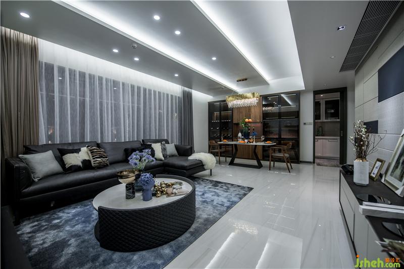 客廳很創(chuàng)新的設(shè)計(jì)了影院式天花,層次感分明,線條感也十分強(qiáng)。而主背景墻有人有意識(shí)的凸顯流線,這樣天花、墻面和地面的輪廓線在視覺(jué)上很好的拉伸了空間。